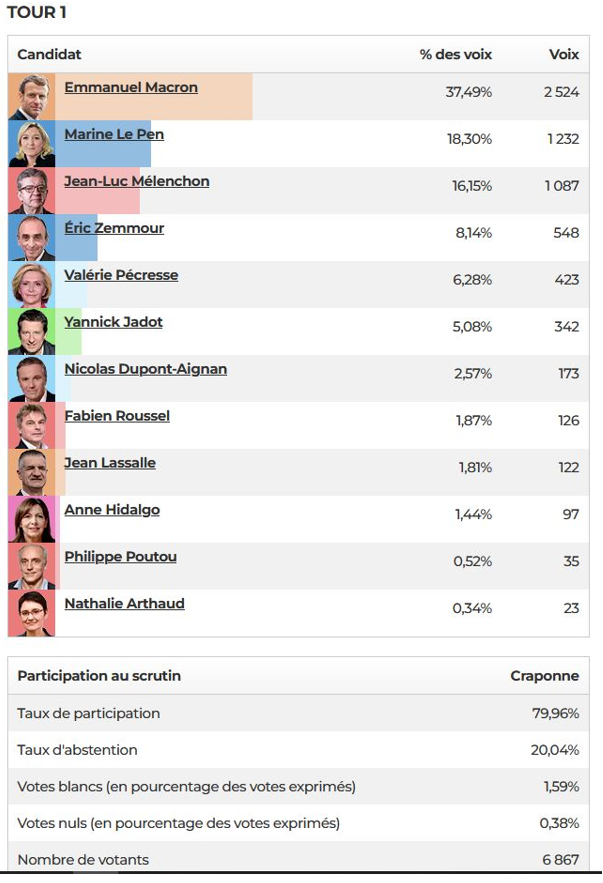 L’élection présidentielle vient de se terminer et voici les résultats à Craponne